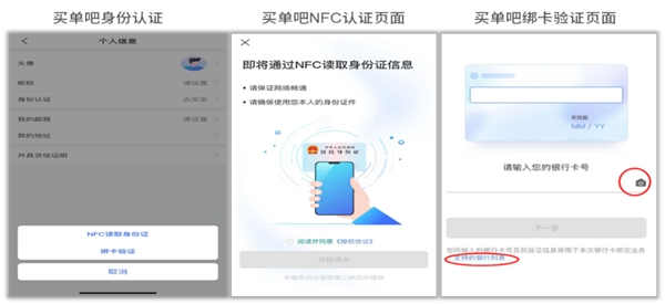 生物识别等技术的应用,助力提升客户身份验证体验。当前证件认证及绑卡验证是各行的主流认证方式,“买单吧”APP6.0支持NFC读卡认证或绑卡认证,其中绑卡支持拍照识别自动录入卡片信息且支持多家银行卡,提高客户身份认证的便捷度。