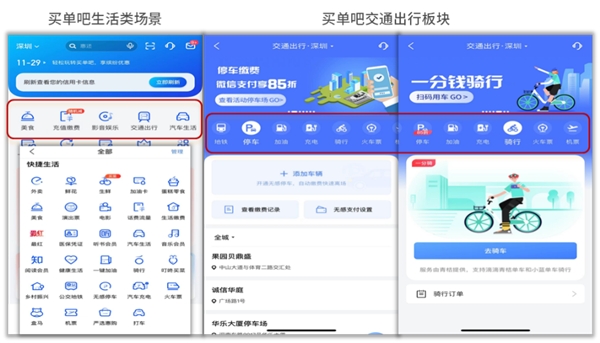 信用卡APP以“高频带动低频”战略思维布局场景生态,因此,小额、高频场景是重点。“买单吧”APP不断打通生活泛圈层,多次与腾讯、阿里巴巴等头部互联网平台深度合作,形成互为流量、互为场景、互为生态、互为客户的新型战略合作生态;“买单吧”APP6.0聚焦客户高频生活场景,重点聚合交通出行大领域的场景服务,覆盖出行场景更丰富、更全面,极大提升客户便捷服务的体验,同时以高频的出行应用带动“买单吧”APP客户活跃。