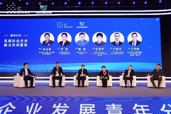 在圆桌对话环节,围绕“发展社会企业,助力共同富裕”的主题,社企星球集团董事长刘玄奇,北京航空航天大学公共管理学院教授、社会企业研究专家李健,广东省佛山市顺德区和创公益基金会理事长汪跃云,中国青年创业导师、四川旭平兔业有限责任公司总经理张书平,宁波市社会工作联合会会长、浙江万里学院法学院副院长江华锋,中国青年创业导师团副秘书长解鹏,分别谈了社会企业如何助力共同富裕的构想和建议。